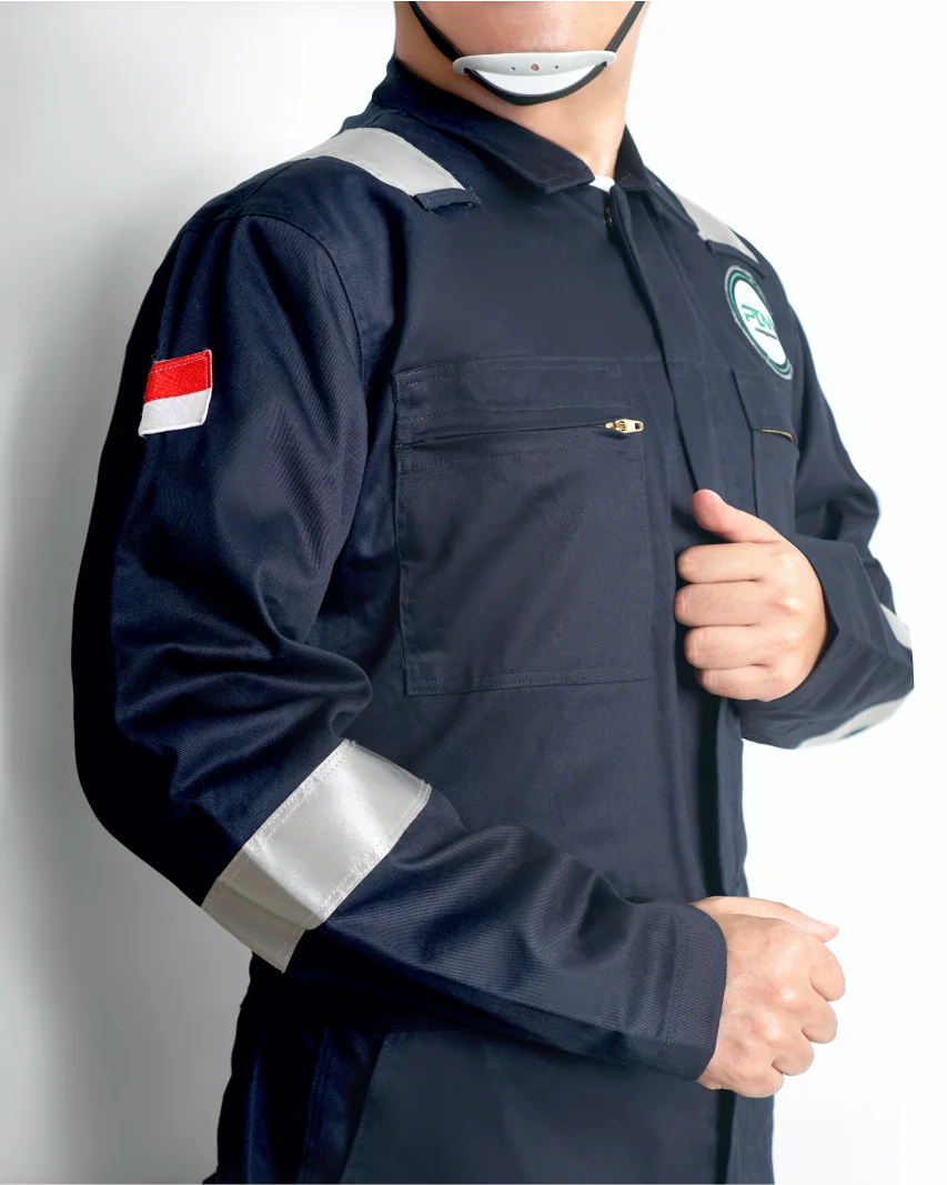Tampil profesional dan tegas dengan warna navy gelap, dilengkapi 3M original reflektor pada bahu, lengan, dan kaki untuk visibilitas tinggi siang maupun malam hari memastikan keselamatan pekerja tetap terjaga di area minim cahaya.